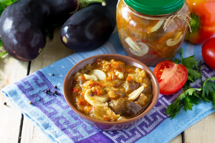 Прежде всего, вам понадобятся свежие баклажаны, которые нужно тщательно вымыть и нарезать небольшими кубиками. Затем их следует обжарить на растительном масле до золотистого цвета. Пока баклажаны жарятся, можно заняться подготовкой остальных ингредиентов. Вам понадобятся лук, перец, чеснок, помидоры, соль, сахар и уксус. Все эти ингредиенты нужно мелко нарезать или пропустить через мясорубку, в зависимости от ваших предпочтений.