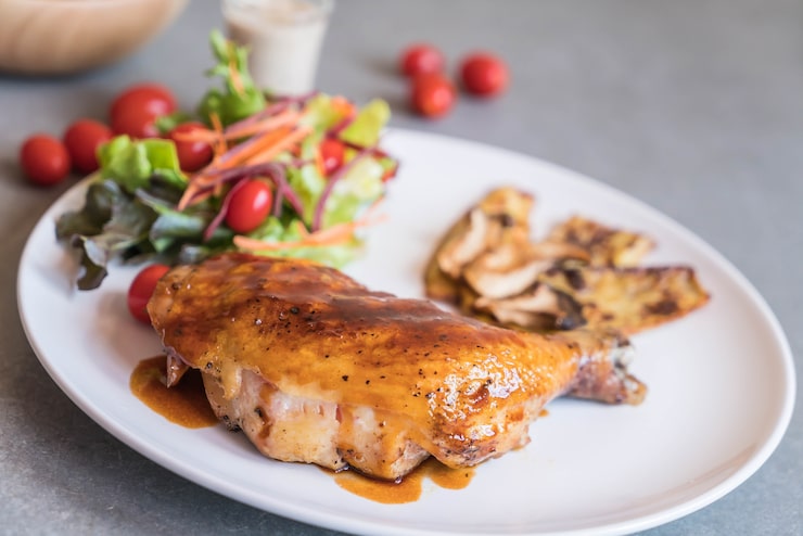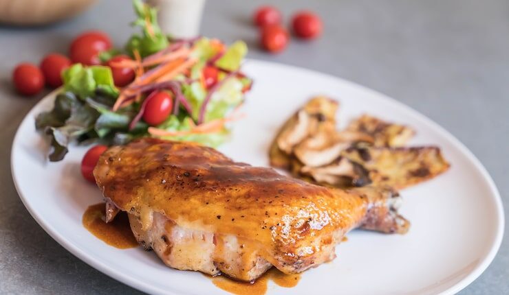 Залейте соусом окорока в форме и отправьте в предварительно разогретую духовку при температуре 180 градусов. Запекайте в течение 30-35 минут, или пока окорока не будут готовы и соус не загустеет. Подавайте их горячими, полив оставшимся соусом. Приятного аппетита!