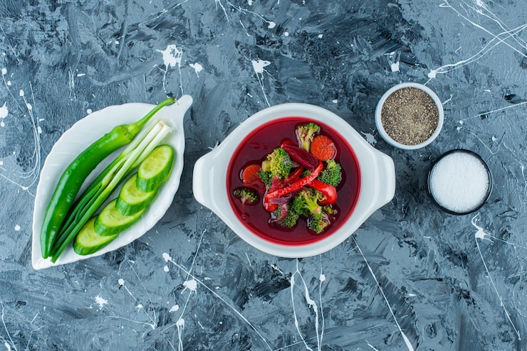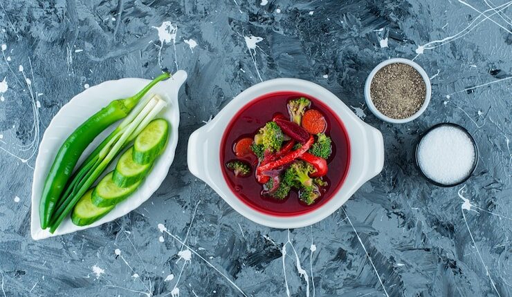 Перед подачей добавьте в суп зелень по вкусу и дайте ему настояться под закрытой крышкой в течение 10 минут. Ваш красный суп готов к подаче!