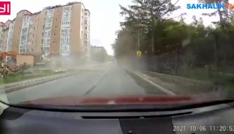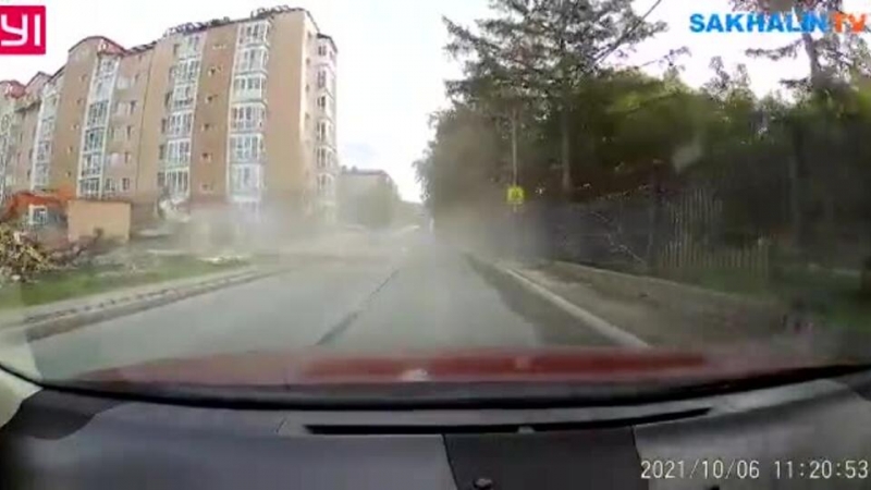 Жилой дом рухнул на проезжую часть на Сахалине Жилой дом рухнул на проезжую часть на Сахалине
