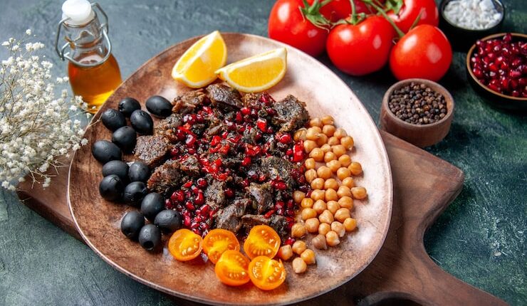 Овощи — для свежести и витаминов используйте свежие овощи, такие как огурцы, помидоры, перец и лук. Нарежьте их небольшими кусочками или соломкой.