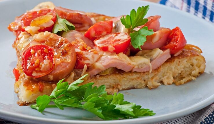 Затем противень отправляем в разогретую до 180 градусов духовку и выпекаем около 15 минут, пока сыр не расплавится и не зарумянится. Перед подачей на стол можно украсить блюдо свежей зеленью и лимоном. Приятного аппетита!
