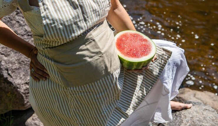 Если вы хотите выбрать спелый арбуз, обратите внимание на его внешний вид. Арбуз должен быть твердым на ощупь и иметь глянцевую кожу без трещин или вмятин. Также обратите внимание на «пятно» арбуза — это место, где арбуз лежал на земле. Если пятно желтое или оранжевое, это указывает на то, что арбуз созрел на грядке, а не был снят слишком рано.