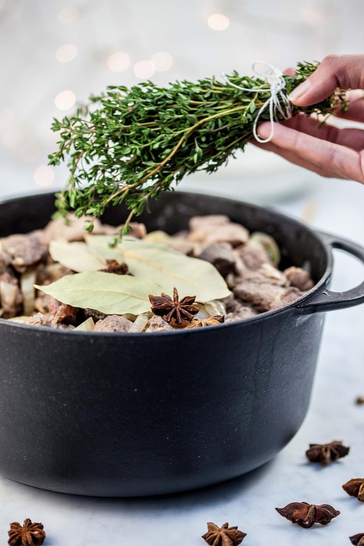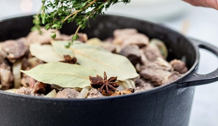 Добавьте в горшок или форму овощи, такие как лук, морковь и чеснок. Они придадут дополнительный аромат и вкус мясу во время приготовления.