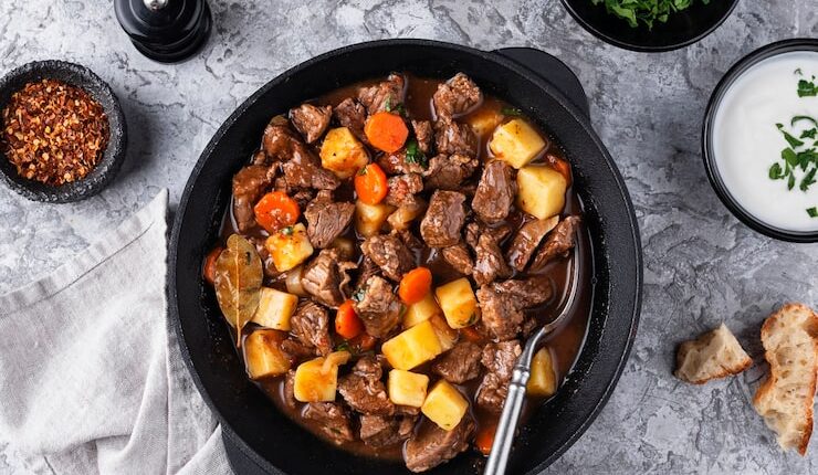 Подавайте мясное рагу горячим, полив его соусом. Это блюдо идеально сочетается с картофельным пюре или хлебом, чтобы собрать остатки соуса.