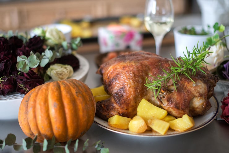 Перед запеканием, дайте птице промариноваться в течение нескольких часов в смеси специй, масла и лимонного сока. Это придаст ей аромат и поможет сохранить влагу.