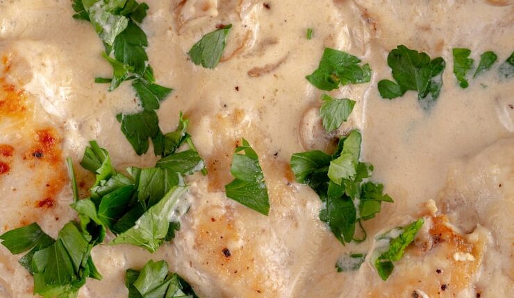 Теперь перейдем к приготовлению сливочного соуса. Начните с обжаривания лука и чеснока на той же сковороде, на которой готовилось мясо. Это добавит соусу дополнительный аромат и вкус. Затем добавьте сливки и дайте им закипеть. Добавьте муку, чтобы придать соусу густоту, и продолжайте варить, пока он не загустеет.