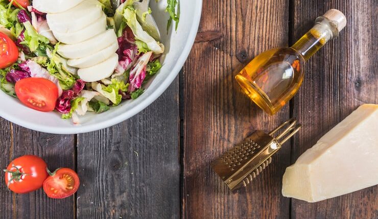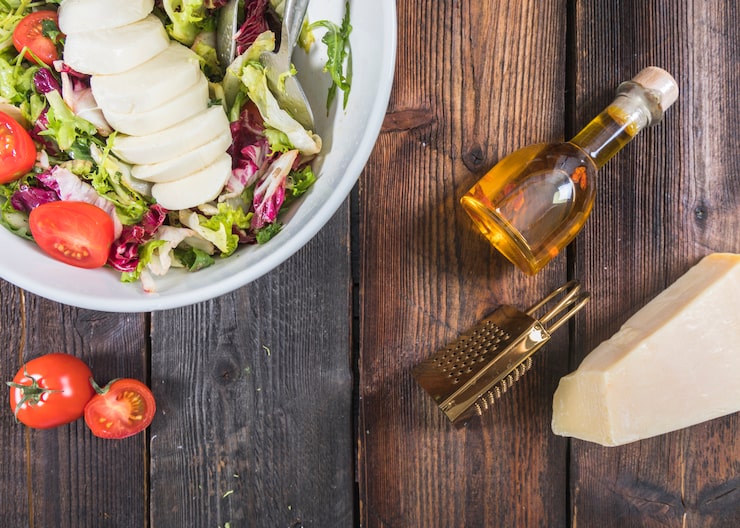 Для приготовления соуса вам понадобится оливковое масло холодного отжима. Оно придаст салату неповторимый вкус и аромат. Также не забудьте добавить свежевыжатый лимонный сок для кислинки.