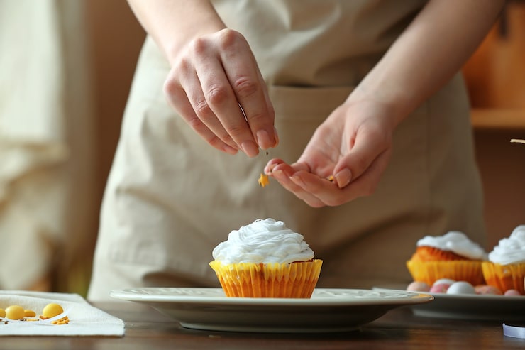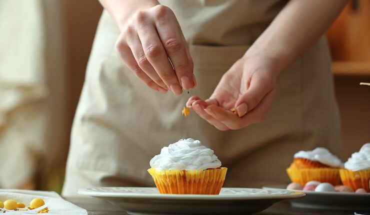 Разложите тесто по формочкам для кексов, заполняя каждую примерно на 2/3. Выпекайте в предварительно разогретой духовке в течение 20-25 минут или до тех пор, пока зубочистка, вставленная в центр, не выйдет чистой.