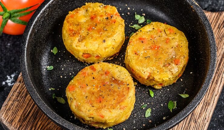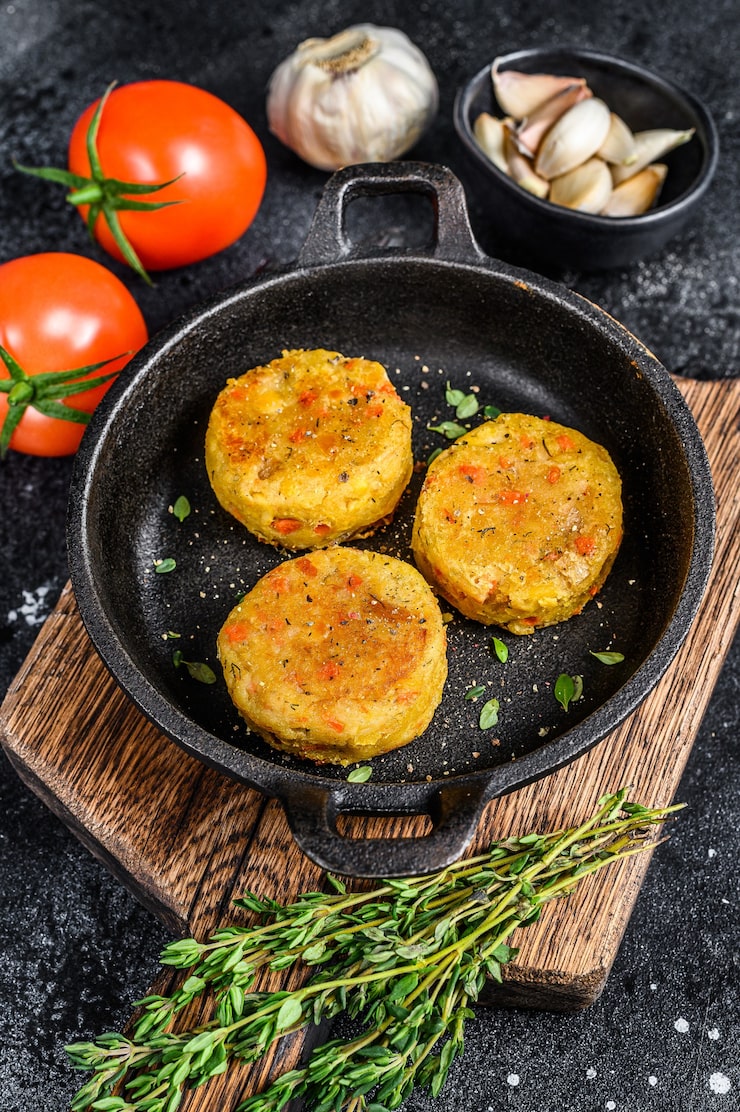 Жарьте оладьи на среднем огне до золотистой корочки с обеих сторон.