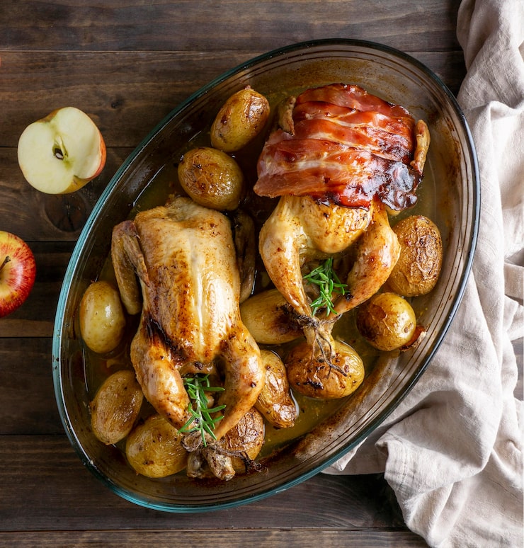 После того, как вы выбрали ингредиенты, приступайте к их подготовке. Клубни земляного яблока нужно тщательно вымыть и очистить от кожуры. Затем нарежьте их на крупные куски, чтобы они равномерно прожарились в духовке. Мясо птицы также нужно вымыть и нарезать на порционные куски.