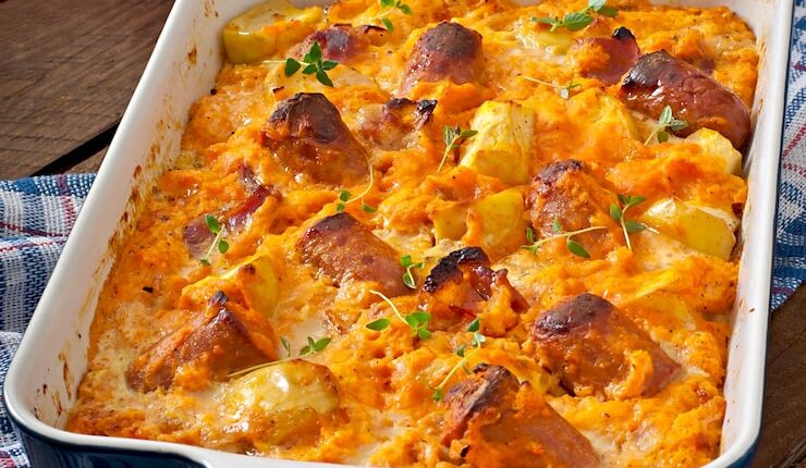 Отправьте форму обратно в духовку и запекайте еще 20-25 минут, пока верх не зарумянится.
