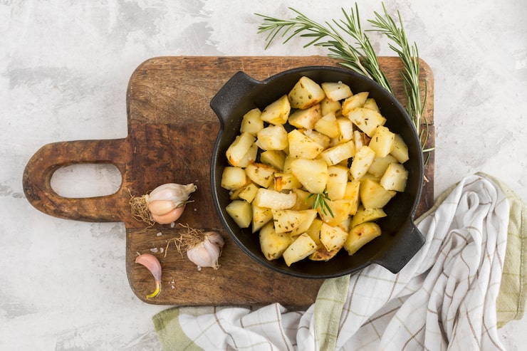 Первым делом очистите и нарежьте картофель. Для этого блюда подойдет как варка, так и запекание. Если вы выбираете варку, то картофель нужно нарезать небольшими кубиками. Если же вы предпочитаете запечь картофель, то нарежьте его тонкими ломтиками.