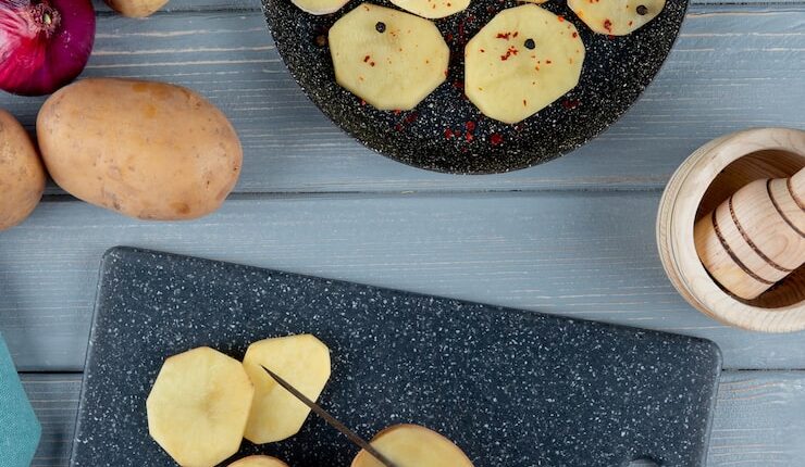 После нарезки картофеля, поместите его в миску с холодной водой, чтобы предотвратить потемнение. Это также поможет удалить лишний крахмал, который может привести к тому, что блюдо будет слишком жирным.