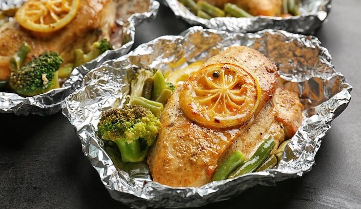 Теперь пришло время завернуть рыбу в фольгу. Разложите лист фольги на рабочей поверхности и положите рыбу в центр. Если вы используете целую рыбу, убедитесь, что хвост и голова находятся снаружи фольги, чтобы они не стали слишком сухими во время запекания. Затем добавьте любые дополнительные ингредиенты, которые хотите, чтобы они были внутри фольги, например, ломтики лимона, чеснока или травы.