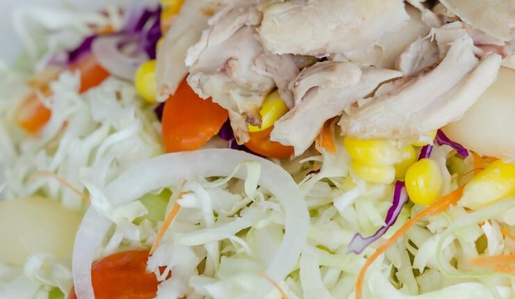 Начните с маринования курицы в смеси соевого соуса, меда и чеснока. Затем запеките ее на гриле или в духовке до готовности. Параллельно приготовьте корейскую морковь, нашинковав ее тонкими полосками и смешав с соевым соусом, сахаром и уксусом.