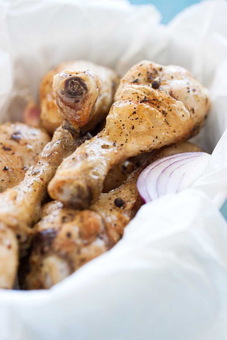 Начните с маринования бедрышек в смеси оливкового масла, чеснока, тимьяна и розмарина. Затем обжарьте их на сковороде до золотистой корочки. Подавайте с печеными овощами и лимонным соусом.