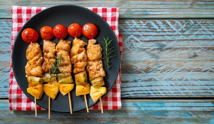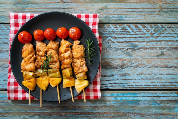 Начните с выбора правильного мяса. Курица — отличный выбор, но индейка или свинина тоже подойдут. Нарежьте мясо на небольшие кусочки, чтобы они легко помещались на шпажках.