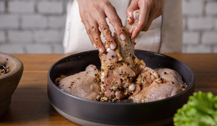 Перед маринованием, птицу необходимо замариновать в солевом растворе. Это поможет сохранить сочность мяса и придаст ему дополнительный вкус. Для этого, растворите в воде столовую ложку соли на литр воды и поместите в раствор куски птицы. Оставьте на 30 минут, затем промойте птицу под холодной водой и протрите насухо.