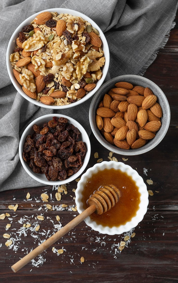 Лесные орехи также являются отличным источником клетчатки, что способствует здоровому пищеварению и поддерживает здоровый уровень холестерина. Кроме того, они содержат витамин Е, который является мощным антиоксидантом, защищающим клетки от повреждения свободными радикалами. Пчелиный нектар, с другой стороны, содержит уникальные соединения, называемые флавоноидами, которые обладают противовоспалительными и антибактериальными свойствами.