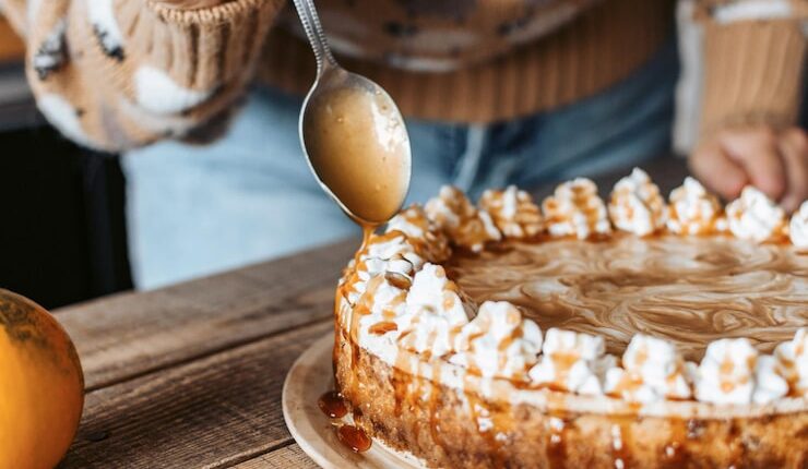 После выпечки дайте торту остыть в форме в течение 10 минут, затем переверните его на решетку и дайте полностью остыть перед подачей на стол.