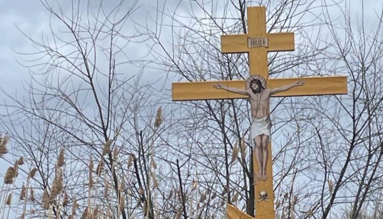 Поклонный крест, восстановленный монахиней Антонией и бойцами СВОДзен