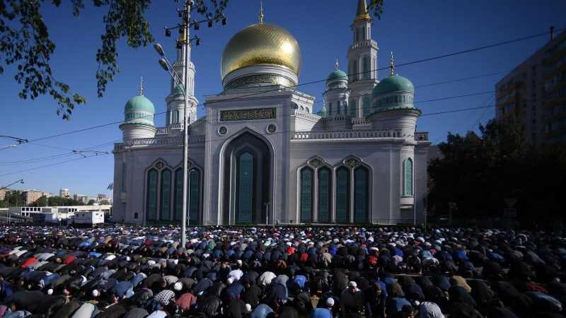 Мусульмане в день праздника Ураза-байрам у Соборной мечети в МосквеДзен