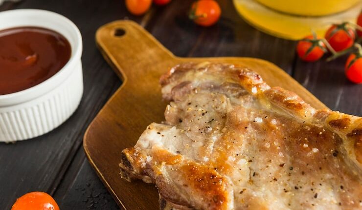 Чтобы проверить готовность мяса, используйте термометр для мяса. Вставьте его в самую толстую часть мяса и убедитесь, что температура достигла безопасной для потребления степени прожарки. Для свинины это обычно 71 градус по Цельсию.