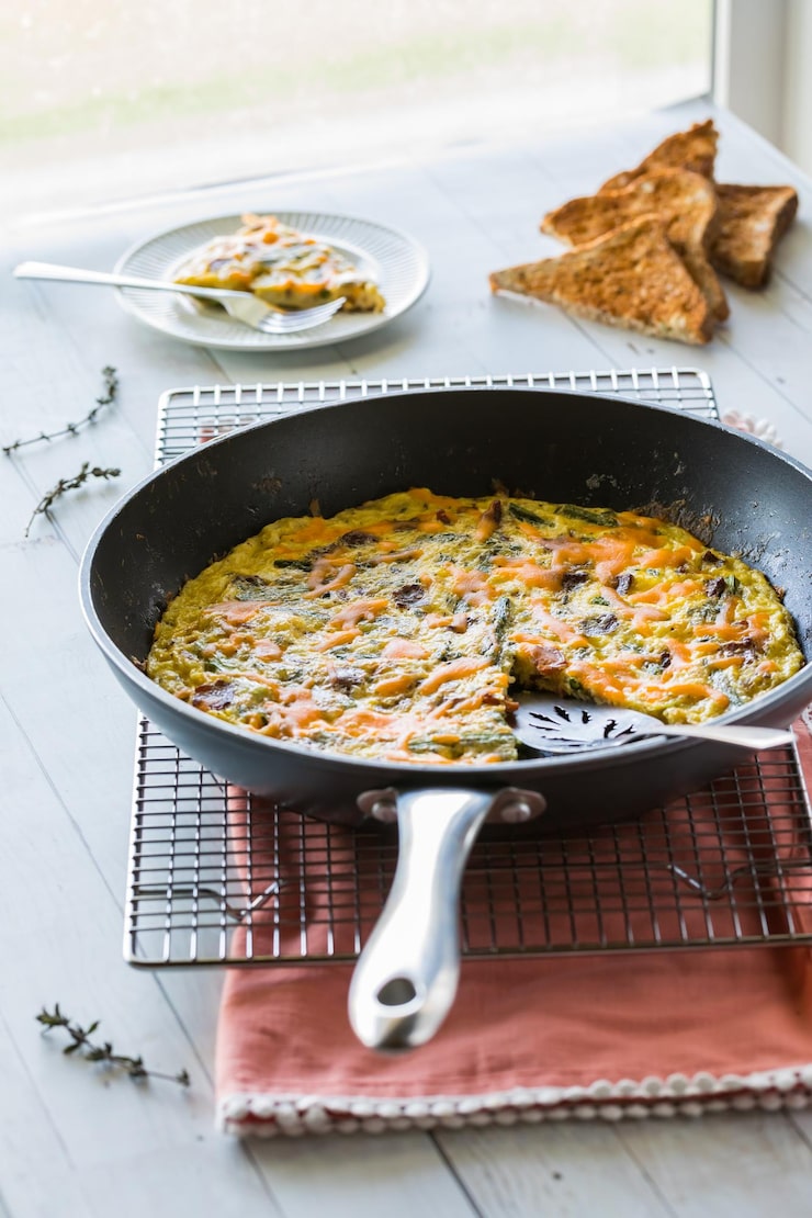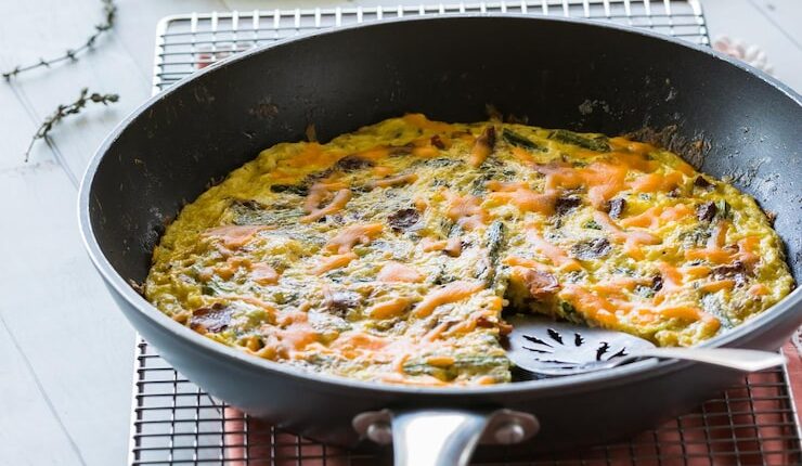 Вылейте яичную смесь в форму и поместите ее в печь. Выпекайте в течение 20-25 минут или до тех пор, пока верх не станет золотистым и не начнет пузыриться.