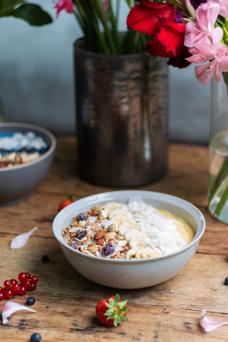 - Теперь самое время добавить свои любимые ингредиенты! Добавьте фрукты, орехи или мед по вкусу.