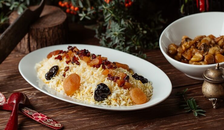 В жаровню добавьте нарезанные овощи, такие как лук, морковь и чеснок. Обжаривайте их до мягкости, затем добавьте специи по вкусу. Рекомендуется использовать зиру, барбарис и красный перец.