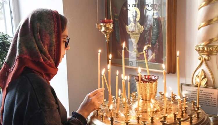 Верующая во время всенощного бдения в храме Успения Божией Матери во ВладивостокеДзенОглавление