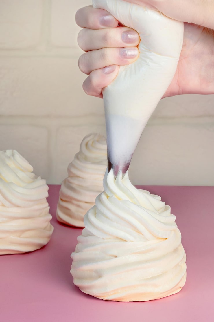 Взбейте яичные белки до образования пены. Постепенно добавляйте сахарную пудру, продолжая взбивать до получения глянцевой консистенции. Добавьте несколько капель лимонного сока, чтобы придать крему дополнительный блеск и стабильность.