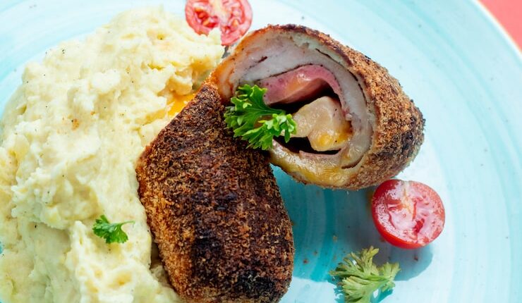Затем поставьте форму в предварительно разогретую духовку и запекайте при температуре 180 градусов в течение 30-40 минут, или до тех пор, пока мясо не будет готово.