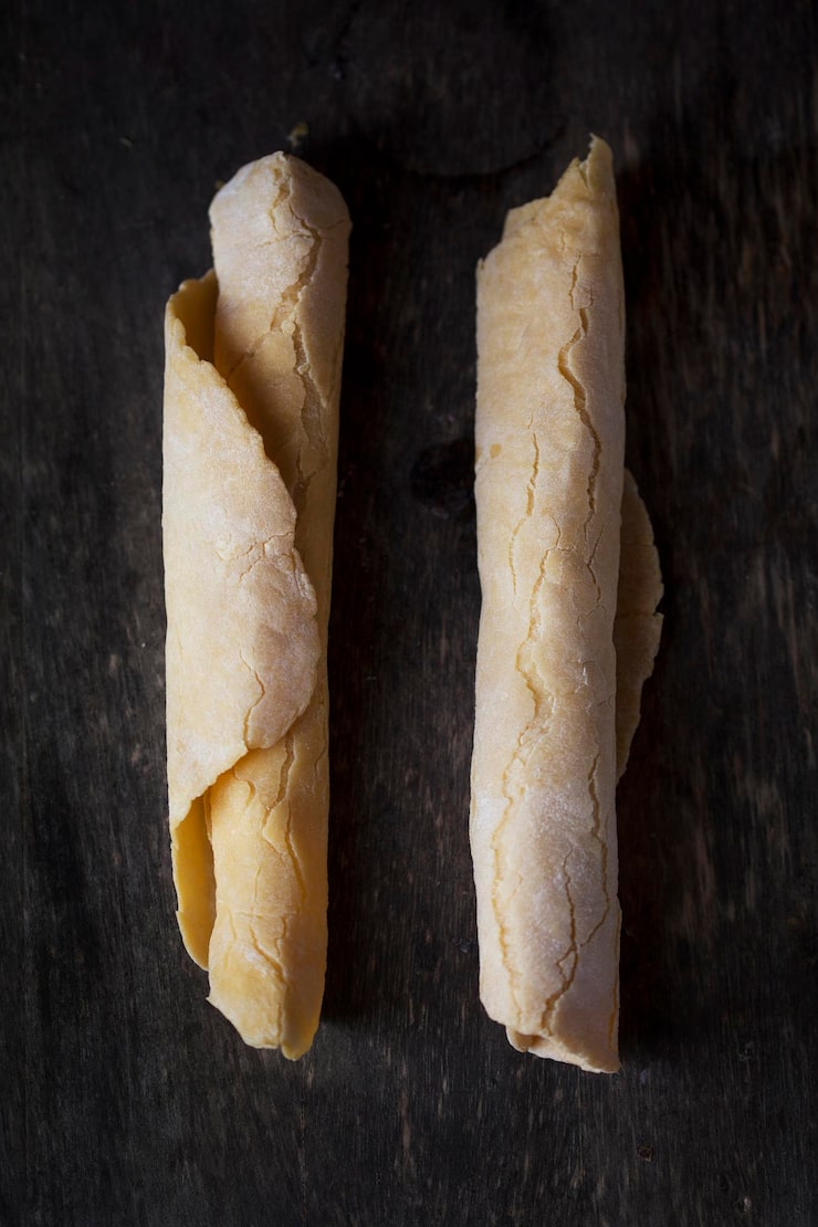 Затем аккуратно скрутите лаваш в плотный рулет. Чтобы он не разворачивался, можно зафиксировать его зубочистками или нитками. Если хотите, чтобы рулет был более плоским, можно слегка придавить его руками.