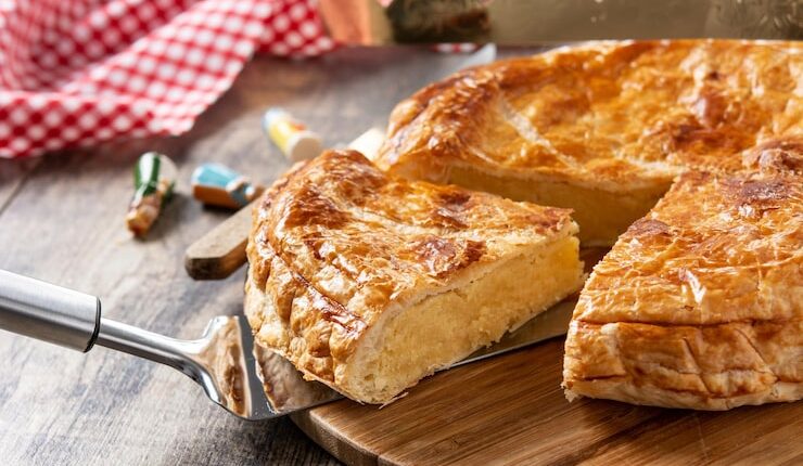 Наконец, смажьте верх пирога взбитым яйцом, чтобы придать ему золотистую корочку во время выпечки. Поставьте пирог в предварительно разогретую духовку и выпекайте до тех пор, пока тесто не станет золотистым и хрустящим.