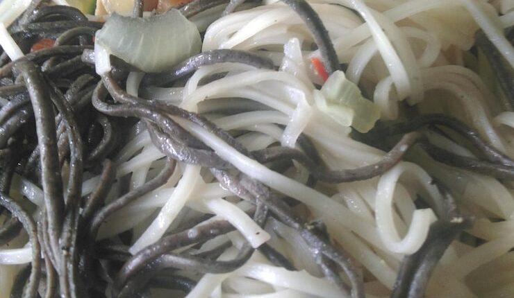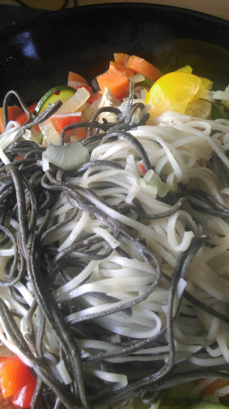 В большой миске смешайте фунчозу и овощи. Добавьте соус, который вы предпочитаете. Если вы используете соус, содержащий сахар, убедитесь, что он не пригорит во время приготовления.