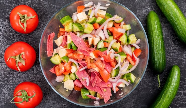 Теперь ваш салат готов к подаче! Этот салат идеально подходит для жарких летних дней, когда вы хотите чего-то легкого и освежающего. Он также может стать отличным дополнением к любому блюду из жареного мяса или птицы. Попробуйте этот рецепт сегодня и насладитесь простым и вкусным обедом или ужином!