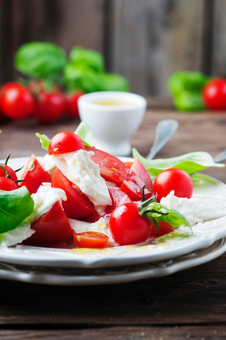 Томаты нарежьте кружочками или дольками, в зависимости от вашего предпочтения. Если они слишком сочные, слегка подсолите и дайте им постоять, чтобы избавиться от лишней влаги.