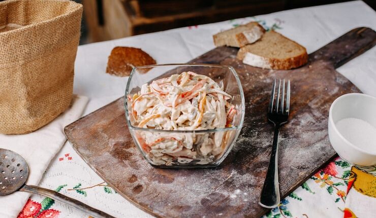 Если вы ищете быстрый и вкусный способ разнообразить свой рацион, обратите внимание на этот оригинальный салат. Сочетание хрустящих крошек и нежных палочек создает идеальный баланс текстуры и вкуса, который понравится всей семье.
