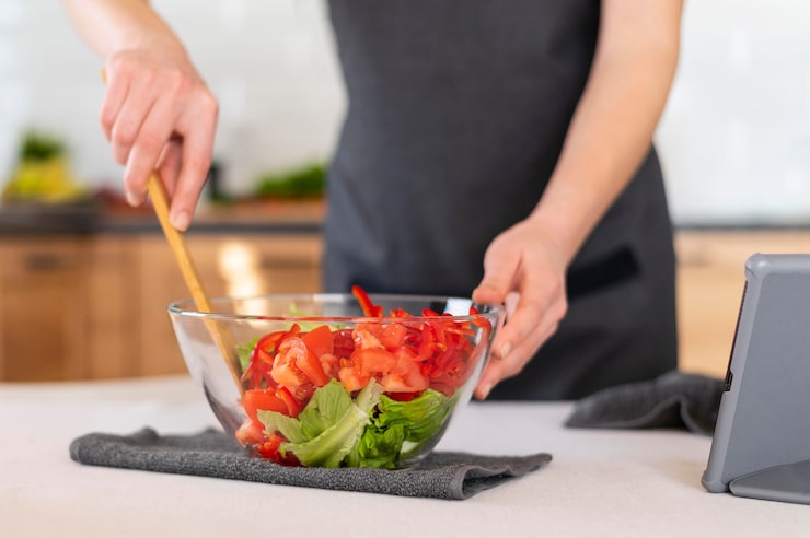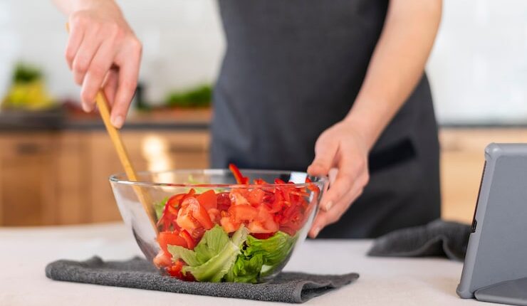 Чтобы придать салату сочности и пикантности, используйте соевый соус и рисовый уксус. Соевый соус добавляет соленость, а рисовый уксус придает кислинку. Начните с 2 столовых ложек соевого соуса и 1 столовой ложки рисового уксуса на порцию, а затем отрегулируйте количество по вкусу.