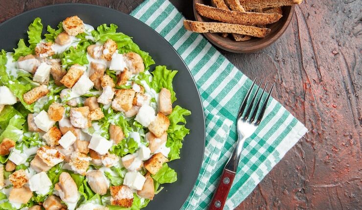 Начните с подготовки ингредиентов. Вам понадобится отварное мясо птицы, лучше всего подойдет курица, нарезанная небольшими кусочками. Также возьмите свежие овощи, такие как огурцы, помидоры и лук. Для сочности и хруста используйте сухарики, а для заправки — майонез или йогурт.