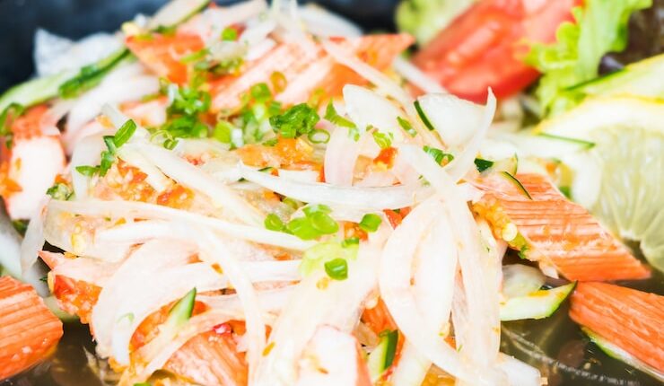 Если вы ищете простой и быстрый рецепт для обеда или ужина, обратите внимание на этот салат с имитацией краба и хрустящими сухариками. Несмотря на свою простоту, этот салат полон вкуса и текстуры, которые понравятся всей семье.