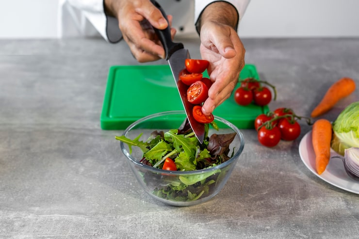 Для нарезки используйте острый нож. Острый нож не только облегчает процесс нарезки, но и помогает сохранить текстуру овощей.