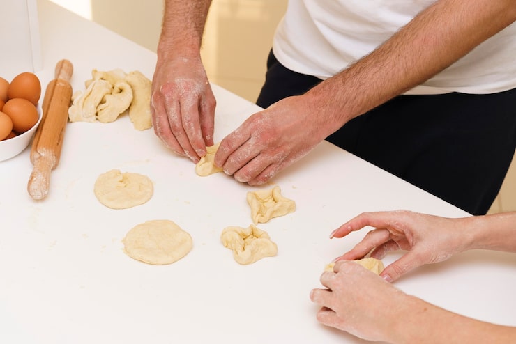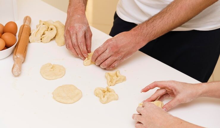 После приготовления теста, переходите к лепке. Для этого возьмите небольшой кусок теста и раскатайте его в тонкий пласт. Затем, используя специальный нож или колесико для теста, нарежьте пласт на равные полоски. Эти полоски станут основой для вашей выпечки.