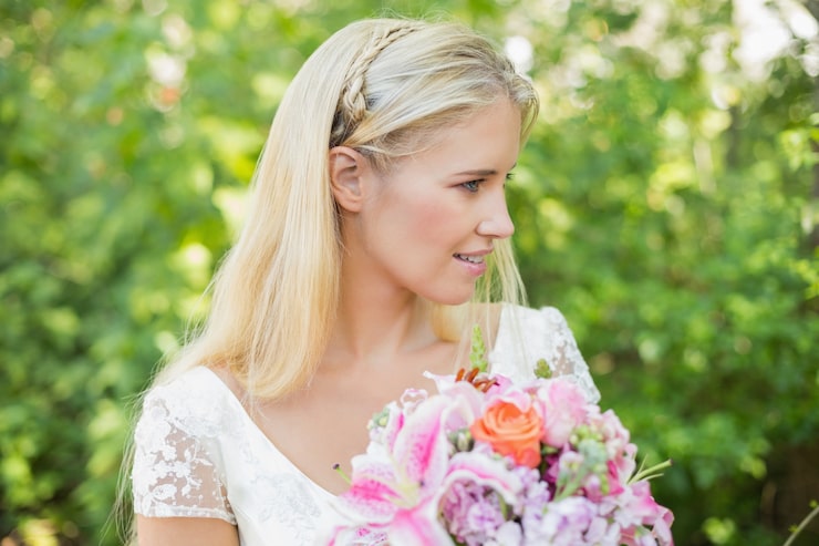 В день свадьбы начните с мытья волос специальным шампунем для тонких волос, который поможет придать им объем и текстуру. После мытья не трите волосы полотенцем, а аккуратно промокните их, чтобы не повредить структуру волоса. Затем нанесите на корни волос мусс для объема и дайте ему высохнуть естественным образом или используйте фен с насадкой-диффузором для бережного сушки.