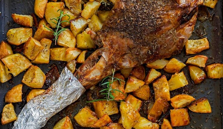 Для приготовления картофеля выберите сорт с плотной текстурой, например, йоркшар или рэд скандинав. Очистите картофель и нарежьте его на крупные куски. Перед запеканием замаринуйте мясо и картофель в смеси оливкового масла, чеснока, розмарина и тимьяна. Это добавит аромат и глубину вкуса.