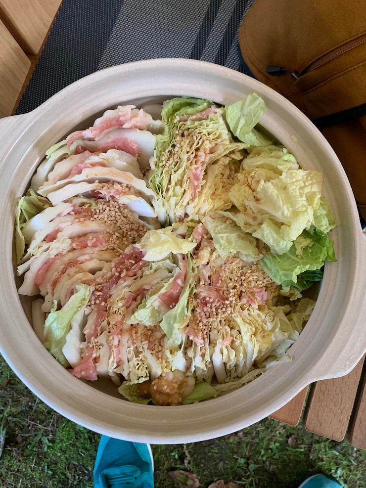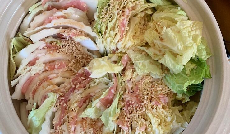 Добавьте нарезанную капусту в кастрюлю с маринадом. Хорошо перемешайте, чтобы капуста была полностью покрыта жидкостью. Накройте кастрюлю крышкой и поставьте на средний огонь.