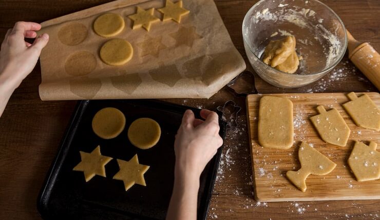 После приготовления теста, приступайте к формовке печенья. Для этого можно использовать формочки для печенья или просто вырезать круги ножом. Выложите заготовки на противень, застеленный пергаментной бумагой. Смазывать противень не нужно.