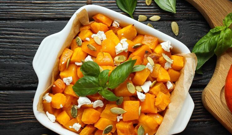 Важно не передержать блюдо в духовке, иначе мясо может стать сухим, а тыква — переваренной. Когда блюдо готово, дайте ему немного остыть, затем подавайте его горячим и наслаждайтесь!